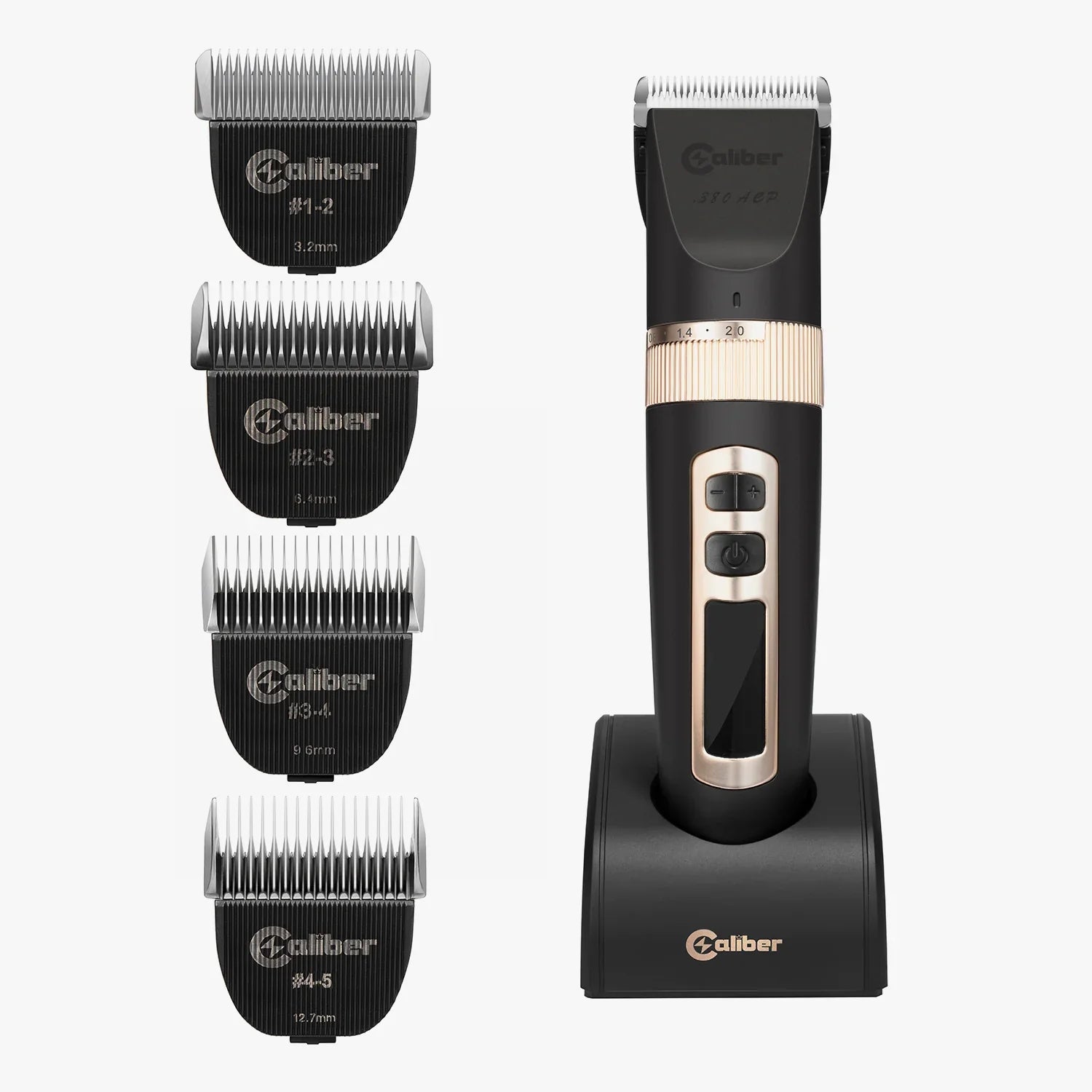 8 double magnetic guards: #0 (1/16”), #1 (1/8’’), #1.5 (3/16’’), #2 (1/4‘’), #3 (3/8‘’), #4 (1/2‘’), #5 (5/8’’), #6 (3/4‘’), charging stand/cord, 3 levers, 3 interchangeable lids, instruction manual, cleaning/maintenance kit, convenient mini screwdriver for blade regulation, and custom body modifications.