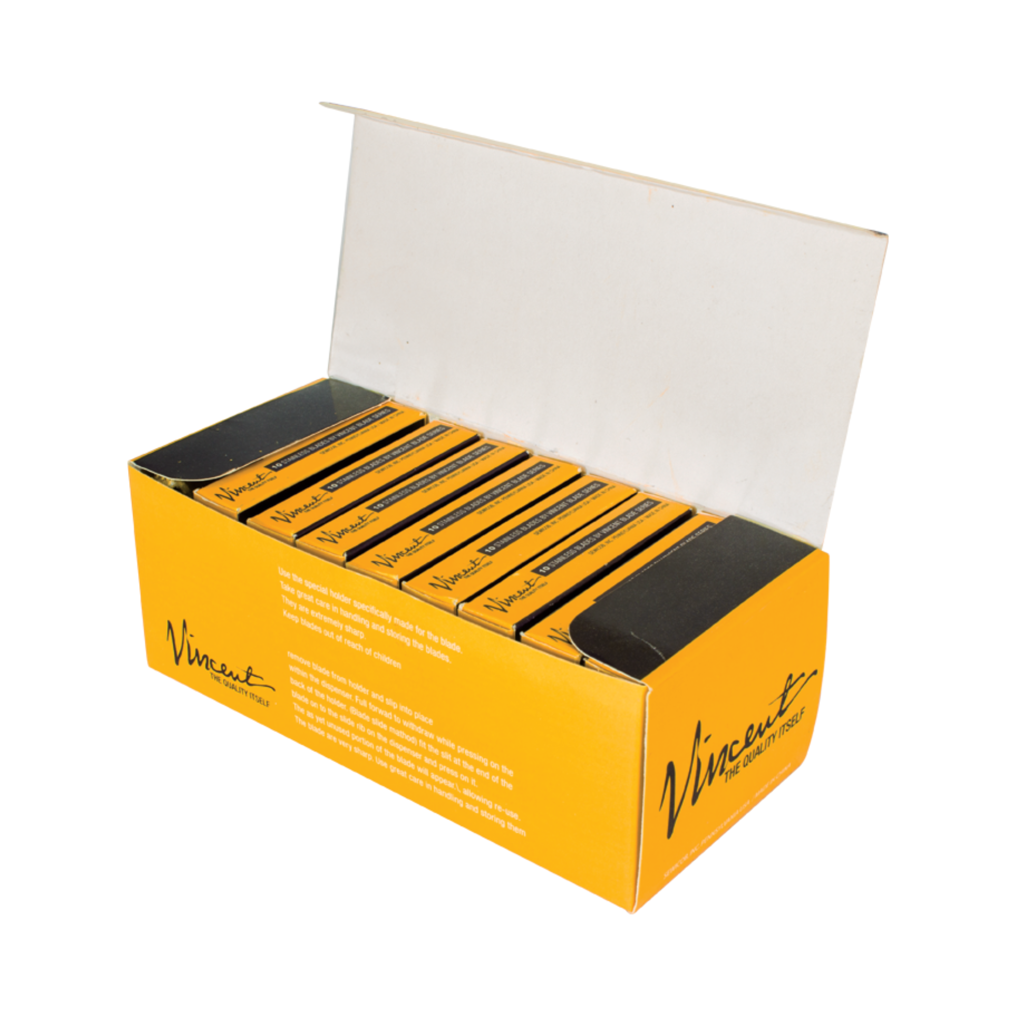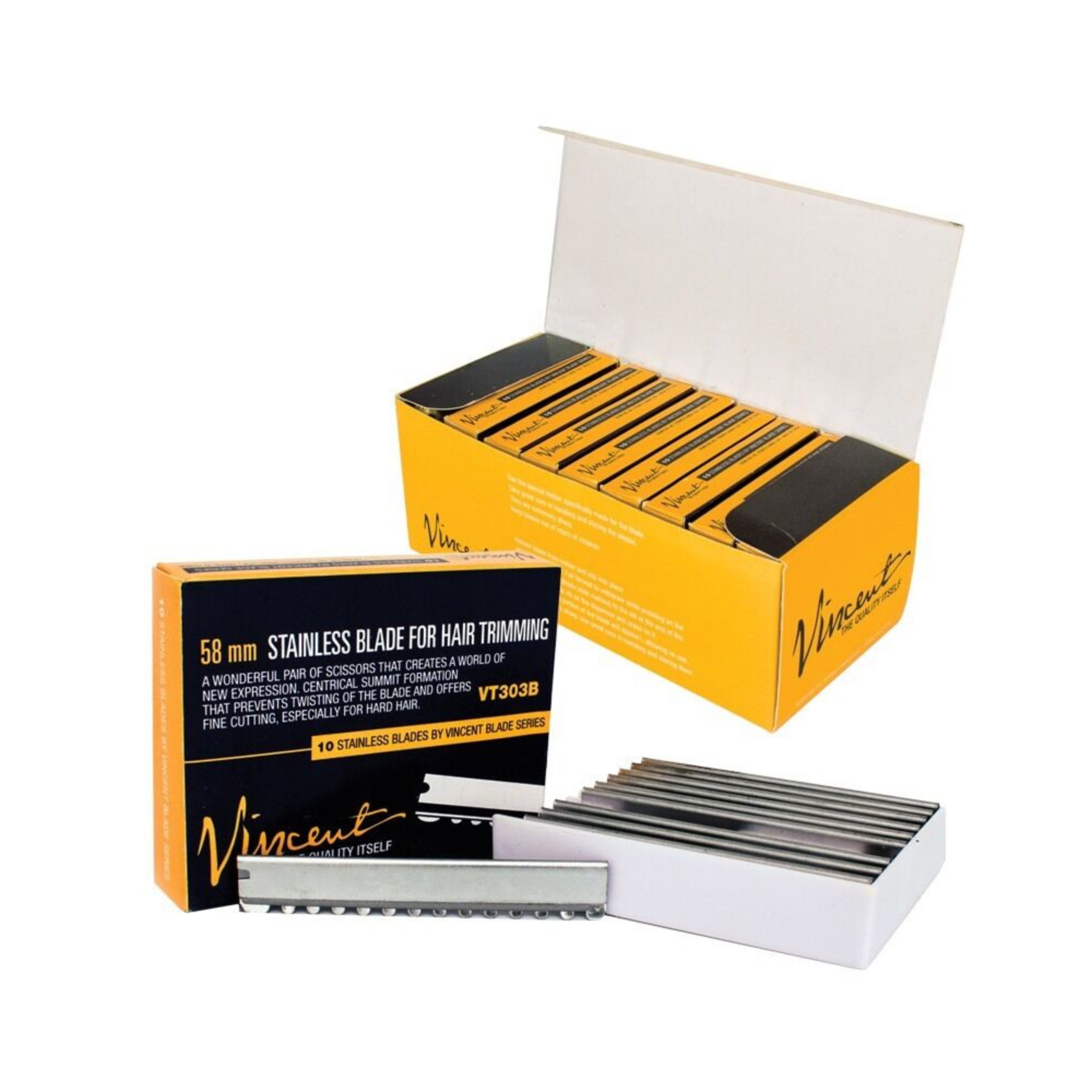 Introducing 58mm Hair Shaper Blades, available in a pack of 100 blades. Each pack contains 10 blades, with a total of 10 packs in a box. Crafted from hard stainless steel, these blades offer exceptional durability, providing extended usage. Designed to fit all standard feather style hair shaper razors, your satisfaction is guaranteed!