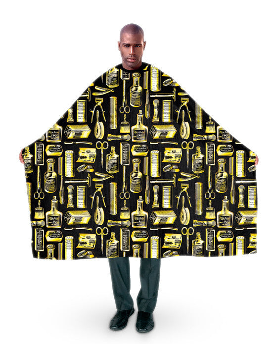 Betty Dain designs and manufactures stylish salon apparel. Renowned for their quirky creations, their salon capes and uniforms capture the ultimate barbershop experience. The Betty Dain Limited Edition Vintage Gold Styling Cape is made up of illustrations integral to the barber trade. Scissors, aftershave, and brushes, it provides a fun narrative for your clients to look at. Compact and made with high quality materials, Betty Dain capes are made for functional style.