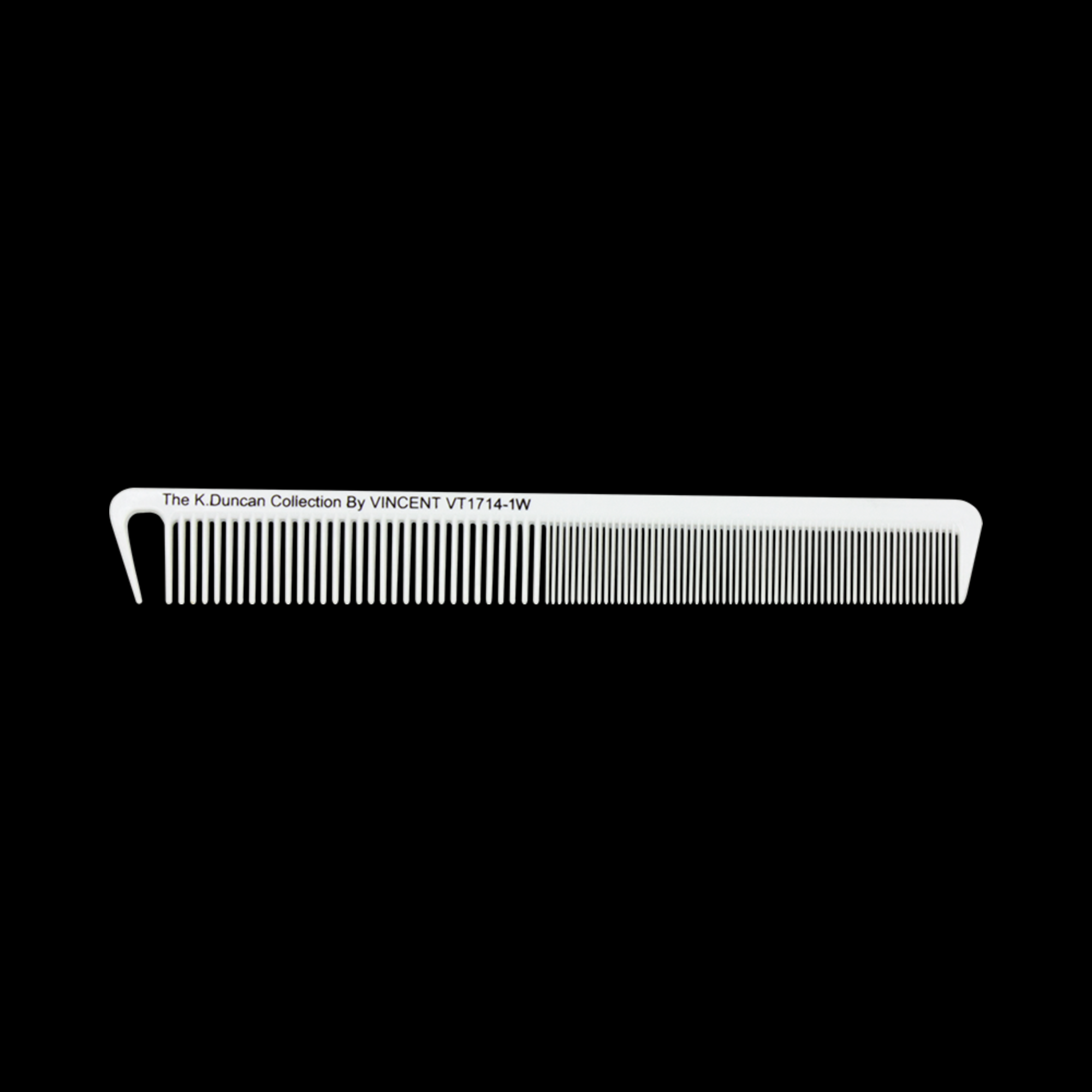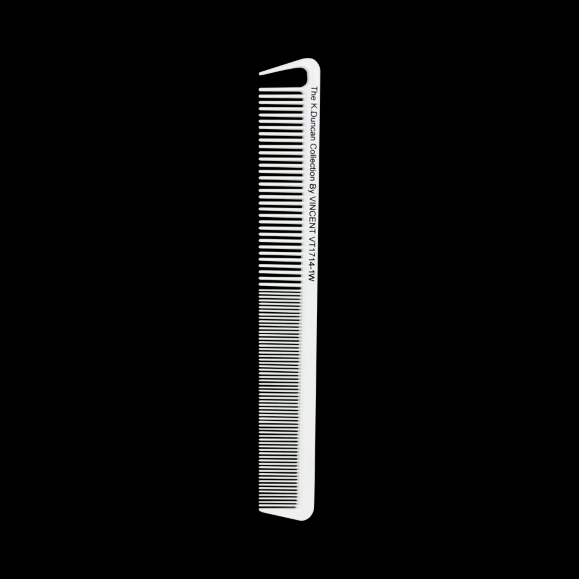 Introducing the Ceramic White All-Purpose Hook Comb, available in fine, medium, and coarse options. Designed in collaboration with Kenny Duncan, these combs are crafted with white carbon for enhanced visibility on dark or color-treated hair. With their static-free, chemical-resistant, and sterilizer-compatible properties, they offer ultimate versatility and hygiene. The rounded teeth ensure gentle detangling, while their heat resistance of up to 428 °F guarantees durability during heated styling.