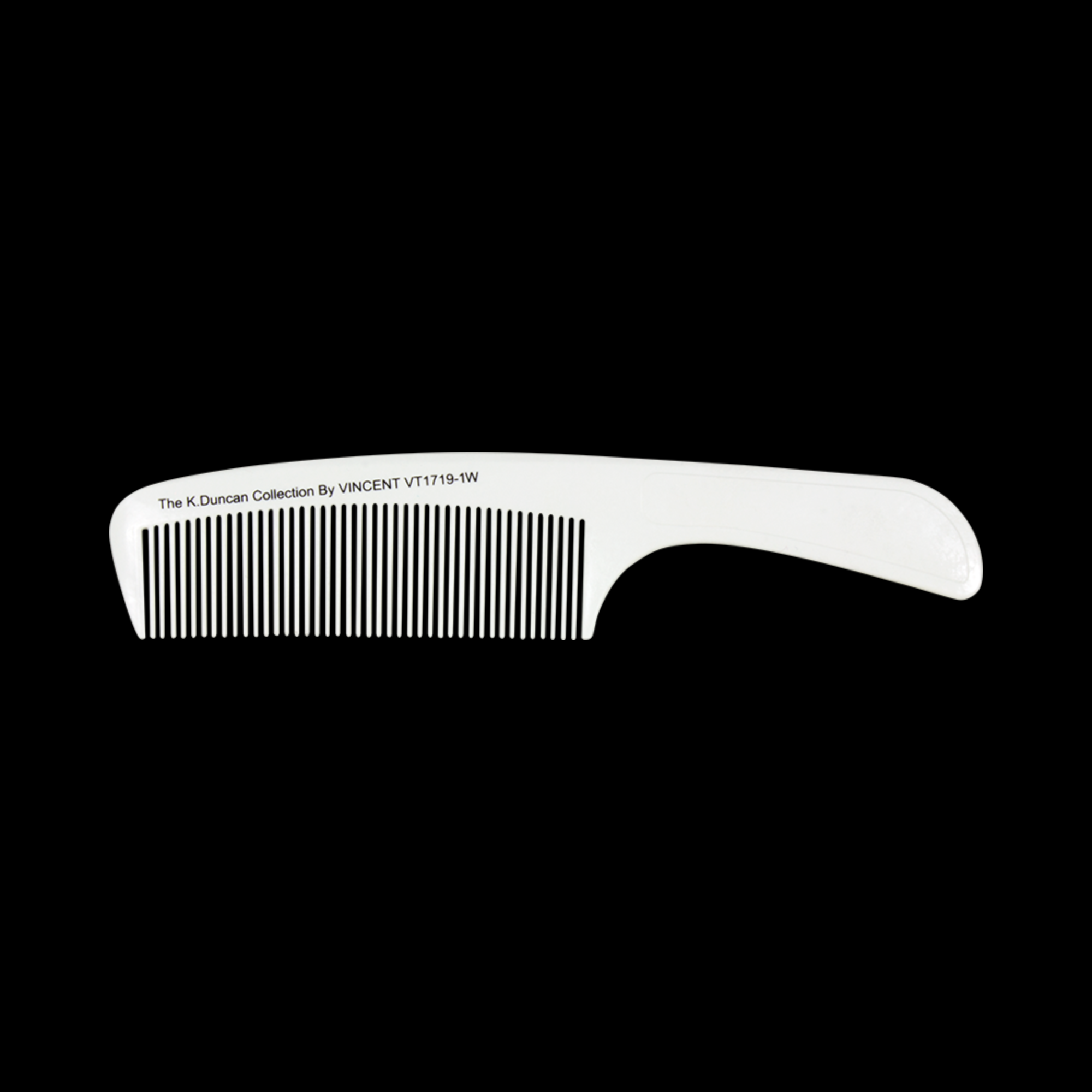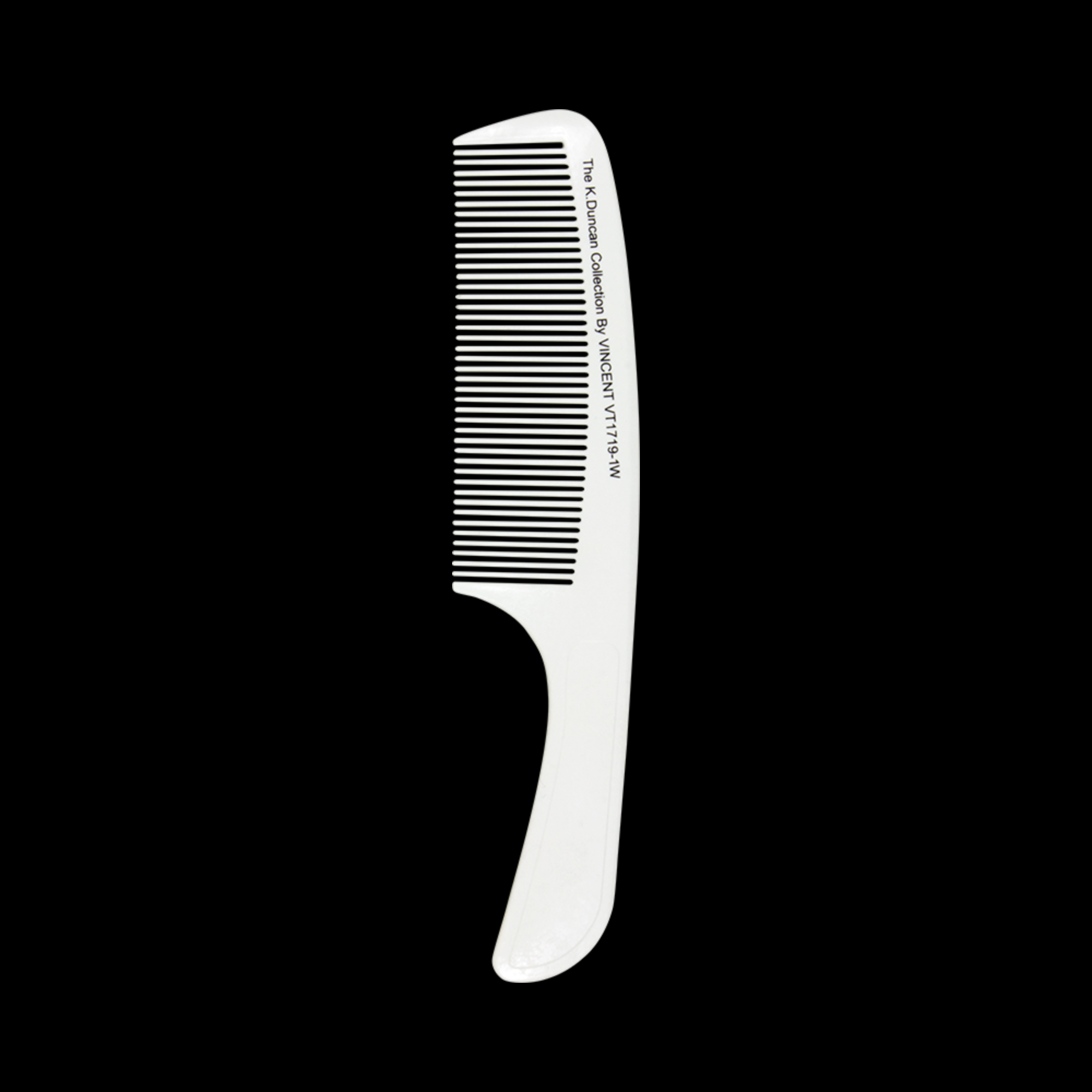 Presenting the Flat Top Comb Jr. 8, a collaboration with Kenny Duncan. Designed with white carbon, these combs are perfect for dark or color-treated hair, offering enhanced visibility during styling. With their static-free, chemical-resistant, and sterilizer-compatible qualities, they ensure effortless grooming. Equipped with rounded teeth and heat resistance up to 428 °F for optimal functionality.