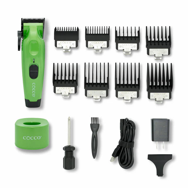 Elevate your grooming routine with the Cocco Hyper Veloce Pro Clipper in Green, where innovation meets style and performance for exceptional haircutting results every time.