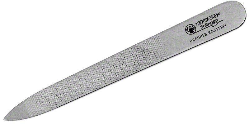 The DOVO triple-cut nail file is a true sustainability champion. It is made of stainless steel and possesses a wear-resistant surface, which gives it the longest functional lifetime among all nail files. The intersecting notching, which is manufactured by using a traditional notching process, characterizes the iconic look of this file. Its small size makes the DOVO triple-cut nail file a space-efficient, indestructible everyday companion and the perfect travel accessory.