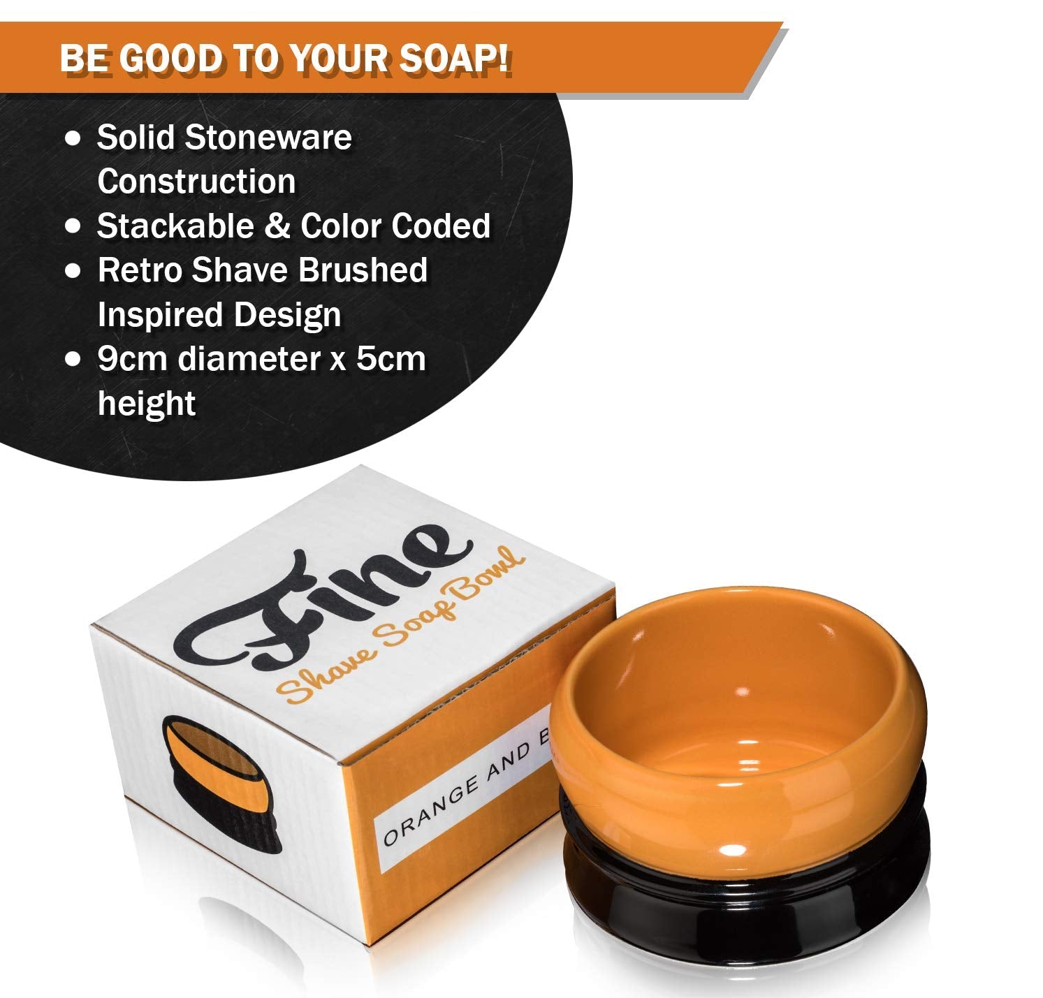 These fine soap bowls have been meticulously designed to make your soap happy, and elevate your shaving ritual to new heights of luxury. Sporting solid stoneware construction, a stackable design, and multiple (scent matching) colors, they also feature a full 5 cm of loading room above the puck and pact 9 cm outside diameter - which should fit most medicine cabinets. You'll know why Mr. Fine is smiling when you drop a new puck in these beauties!