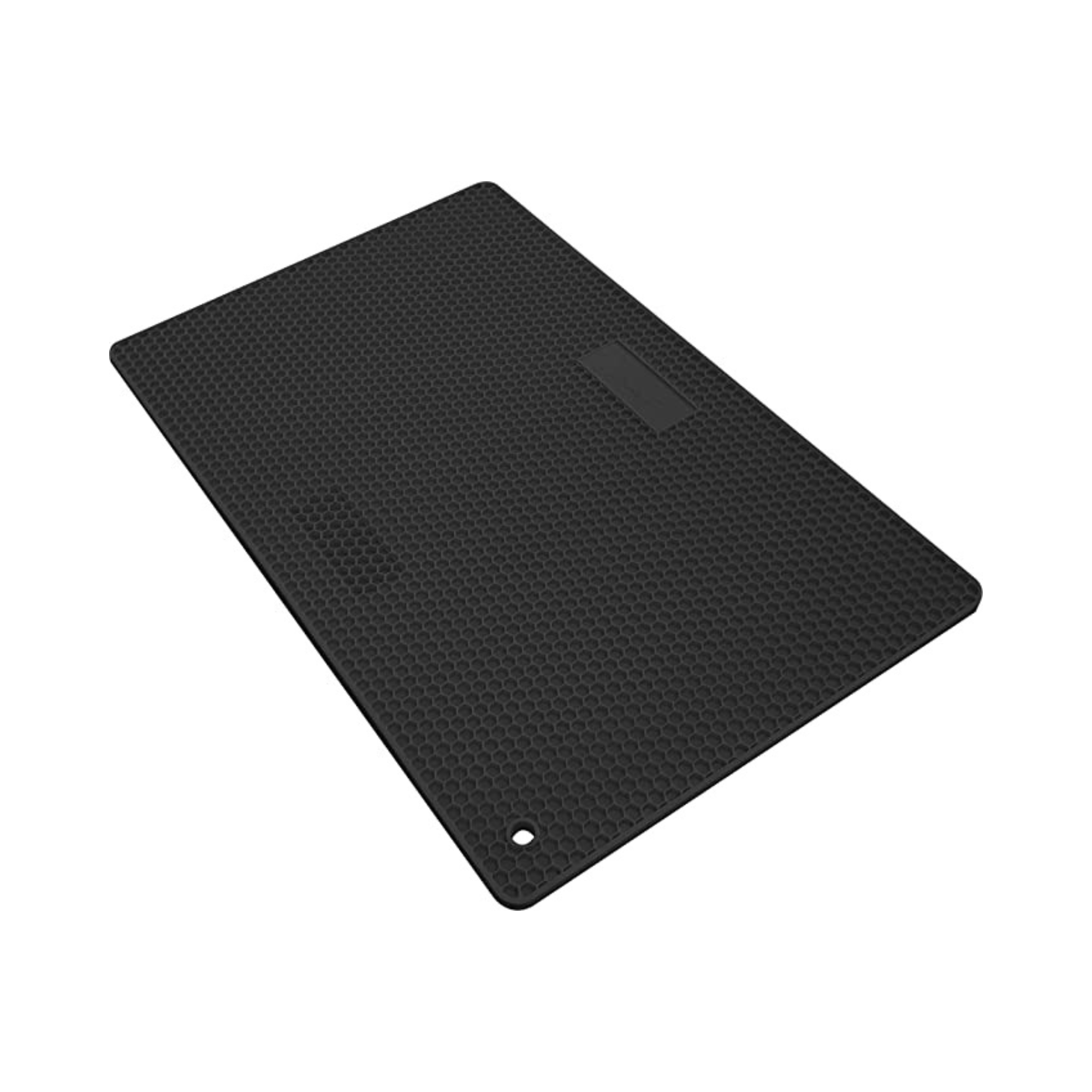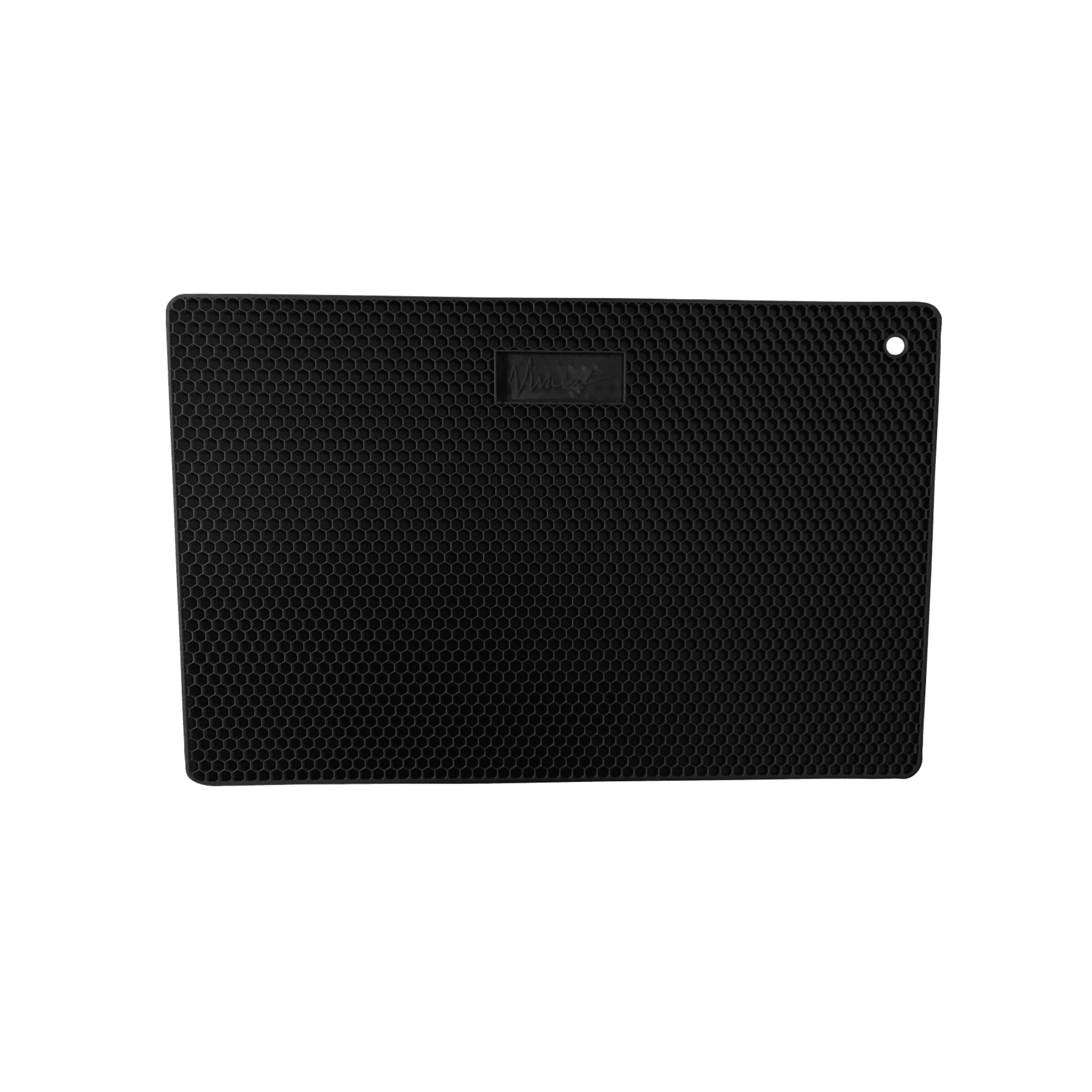 Introducing the Heat Resistant Silicone Tool Mat, measuring 10" x 15.25" x .25". Made from 100% silicone, this soft yet protective mat is perfect for your countertop. With a heat resistance of up to 450°F, it safeguards surfaces from burns and scratches. The honeycomb pattern prevents tools from slipping off and damaging your surface. Easy to clean with soap and water, it ensures a sanitary workspace. Upgrade your countertop protection with the Heat Resistant Silicone Tool Mat!