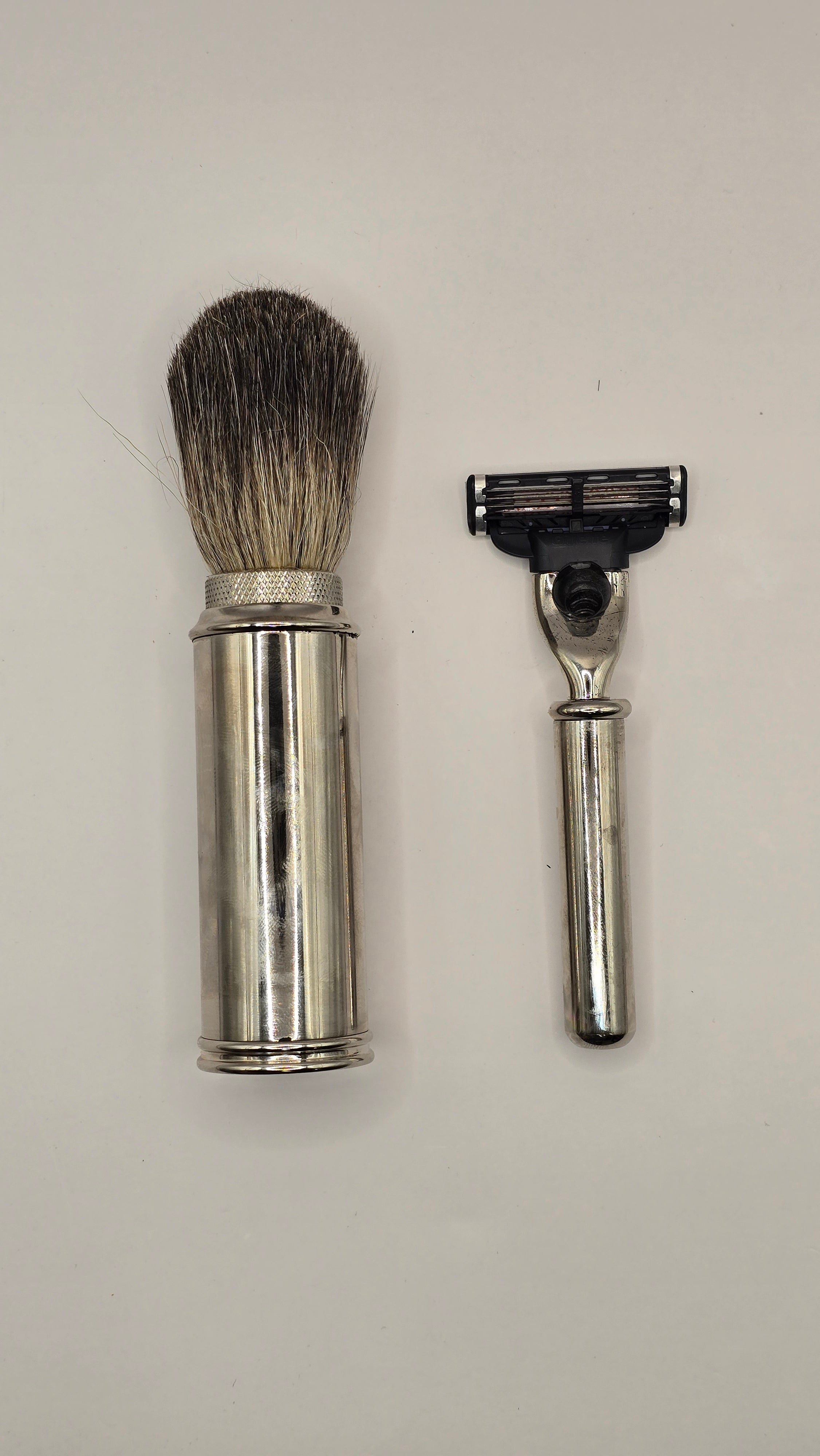 Introducing the IL Ceppo Mach3 Travel 2pc Shave Set in classic brown, the epitome of refined grooming for the modern traveler. Crafted with precision and elegance, this travel set ensures you maintain your impeccable style even on the go.