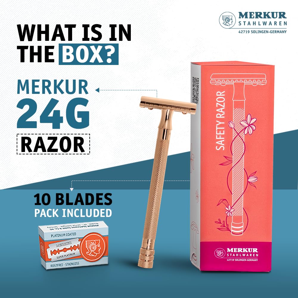 - 1 Merkur DE Razor with rose gold finish and straight-cut comb