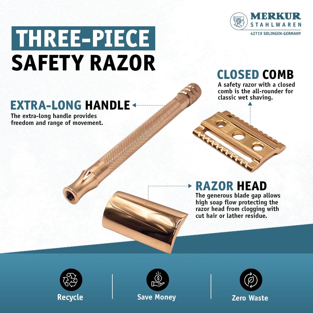 Indulge in the timeless art of traditional wet shaving with the Merkur DE Razor. Exquisitely crafted in Germany, this razor epitomizes precision engineering and luxurious design. With its stunning rose gold finish, straight-cut comb, and long handle, the Merkur DE Razor offers a shaving experience like no other. Honorably designed and meticulously made, it is a testament to the heritage of German craftsmanship.