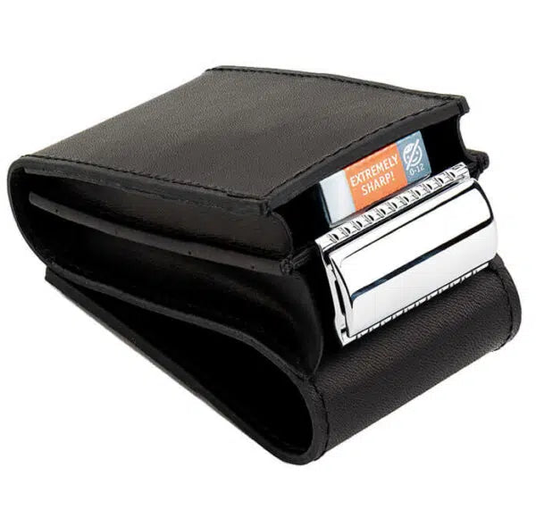 - 1 Merkur Leather Case crafted from black cowhide leather