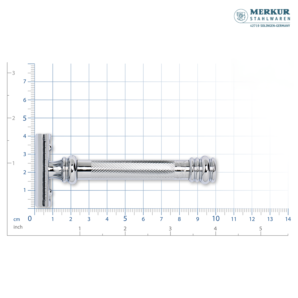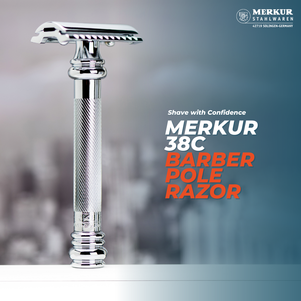 - 1 Merkur 38001 safety razor with brass handle and die-casted zinc razor head