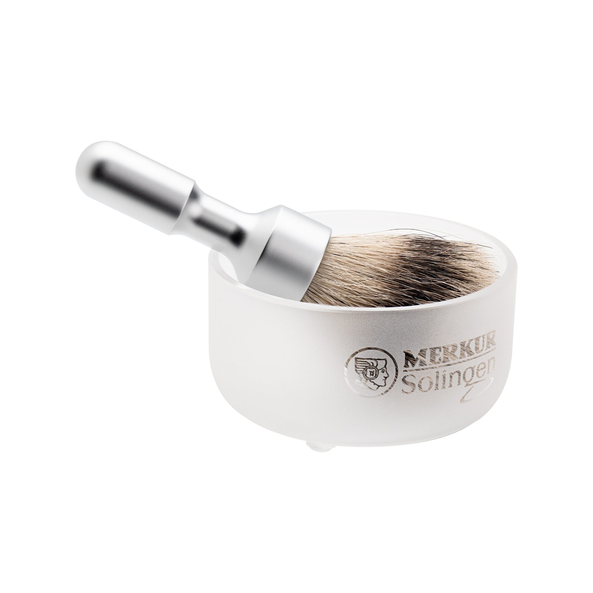 The MERKUR 4000 is a handmade mouth-blown glass bowl. It is created to take up the piece of soap you choose for your refreshing shave. The seize fits comfortably into your hand to lather up your shaving soap with your brush. The satin finish keeps it looking clean and gives it a non-slip touch.