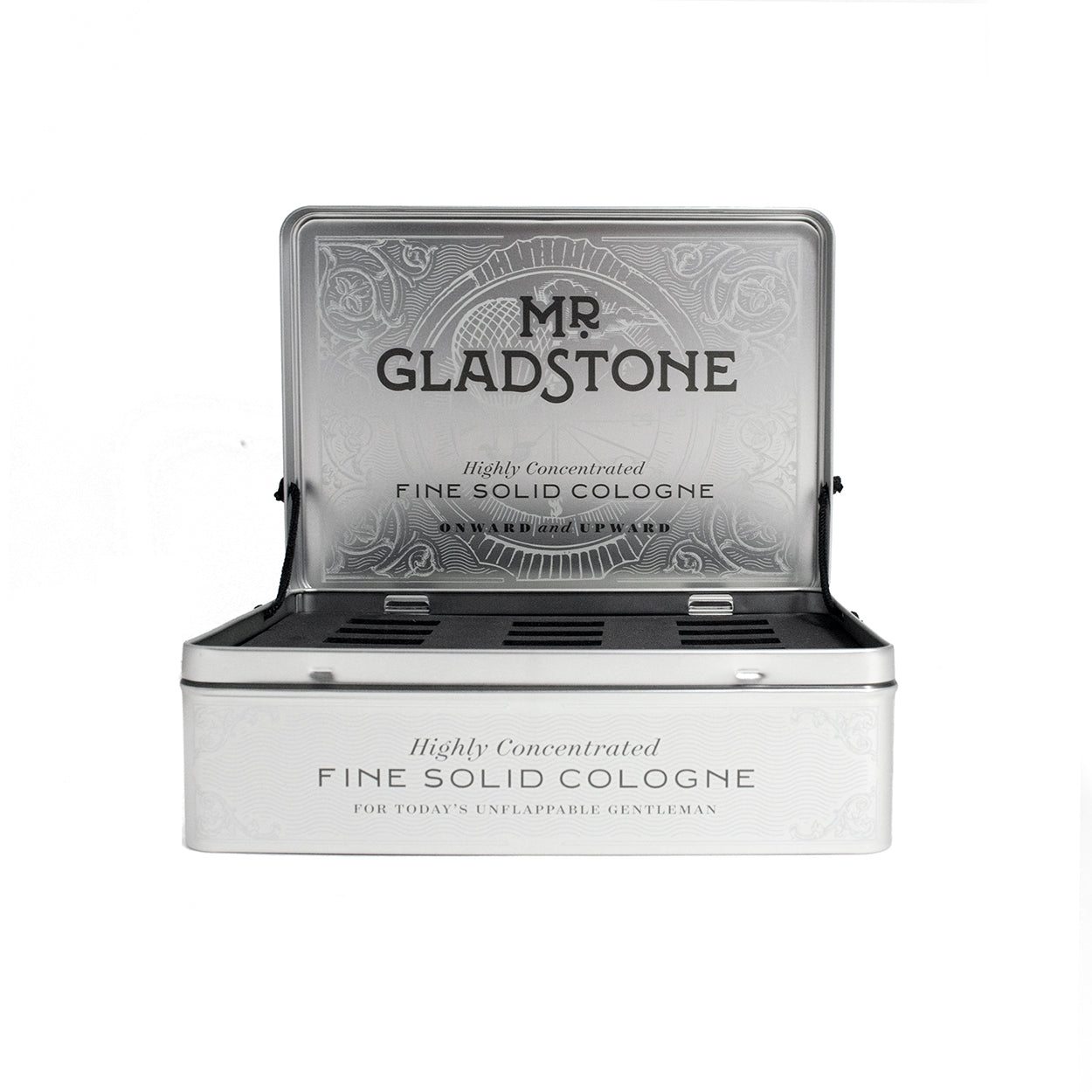 - Fits 18 units of Mr. Gladstone Solid Cologne (3 of each scent)