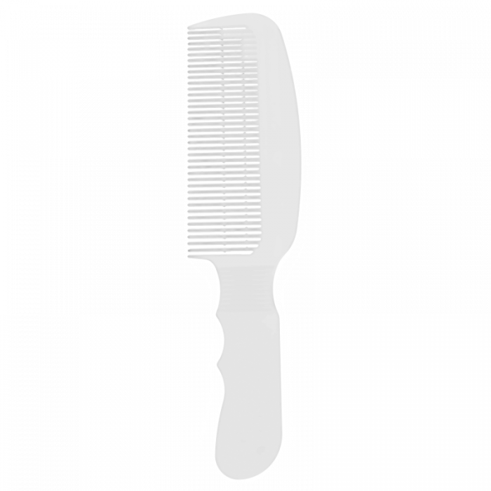 The Wahl Barber Flat Top Comb is excellent for tilting and comb mower techniques. Barbs hold hair with even tension. The textured thumb grip helps in easy rotation of the comb. This comb model is durable and light in weight and its comfortable handle offers optimal control.