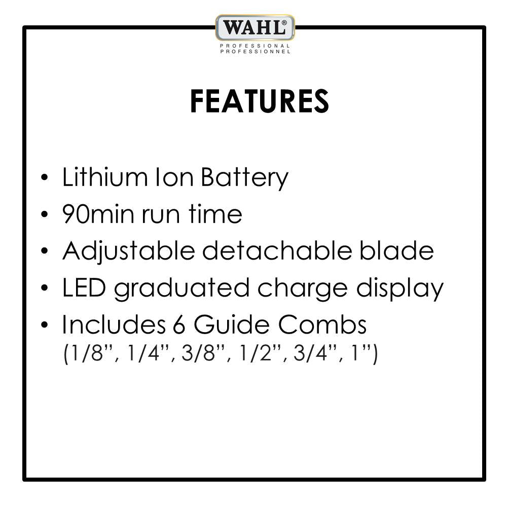 90 minutes run time with 1-hour quick charge. Lithium Ion no memory battery. Powerful rotary motor runs at 5,000 RPM's with integrated rapid power for constant speed control regardless of battery charge level. Quiet with low vibration. LED graduated charge display. Precision carbon steel blade for high performance clipping. Adjustable 5 position blade for cutting lengths from 0.7 mm to 3 mm.